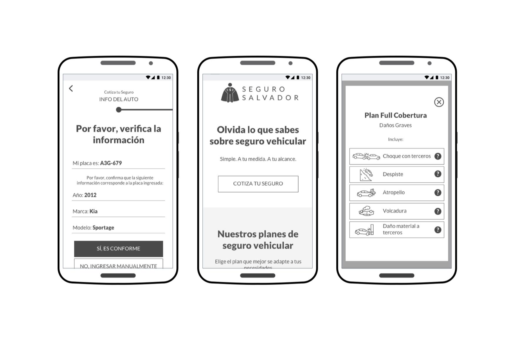 We started developing prototypes in different levels of fidelity to explore solutions and shape things up, with our goal in mind: support car ownership experience by protecting it with an affordable and hassle free car insurance.