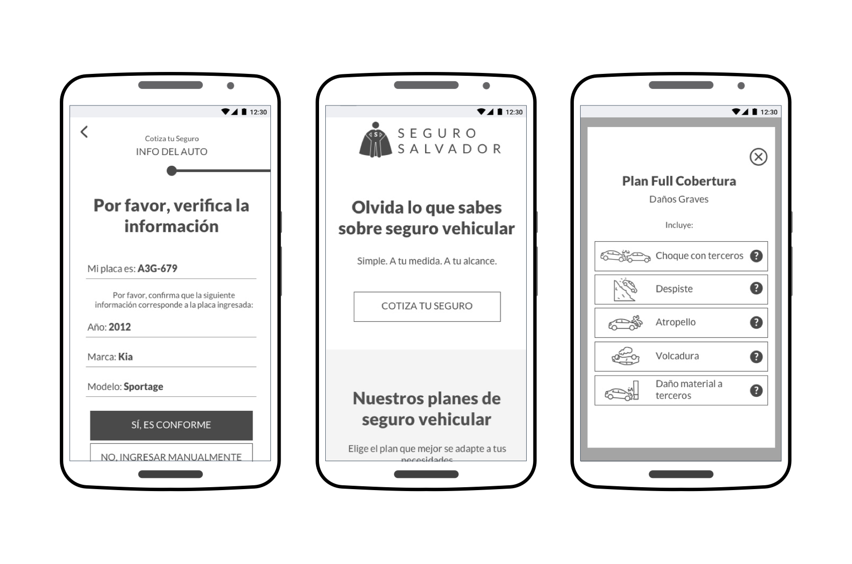 We started developing prototypes in different levels of fidelity to explore solutions and shape things up, with our goal in mind: support car ownership experience by protecting it with an affordable and hassle free car insurance.